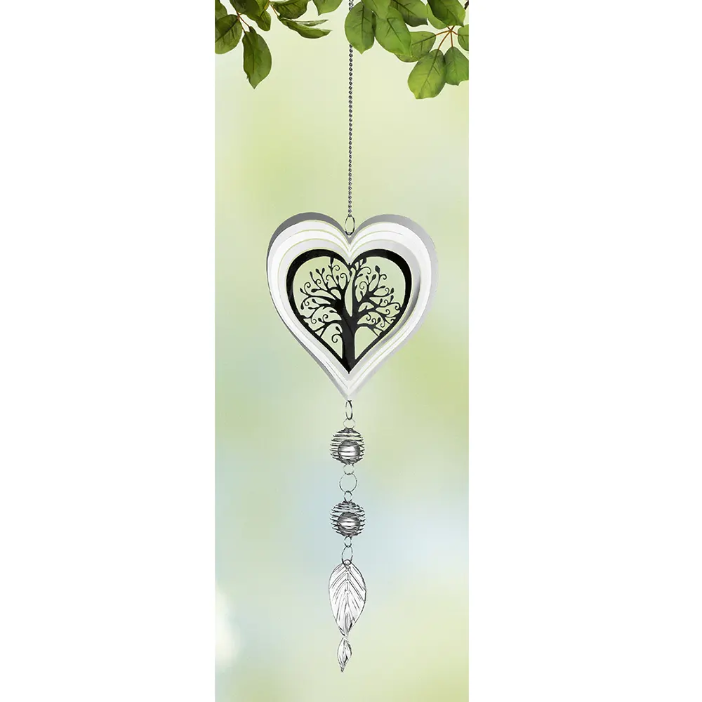 A szívben lévő indák egy életfát jelenítenek meg. A Gildehandwerk acél függődísze 13x54cm méretű.
