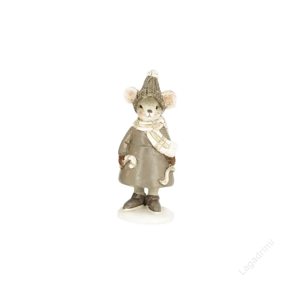 A szürke ruhácskában és szürke sapkában lévő, 9 cm magas kisegér figura kedves kis dekoráció lehet, ha a visszafogott színvilág áll közel hozzád.