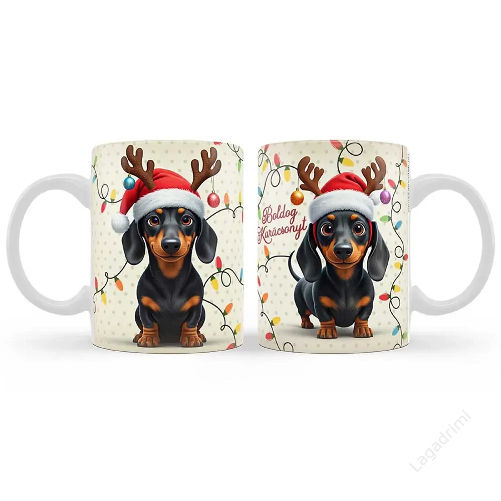 Karácsonyi ajándék bögre, tacskó, 3dl