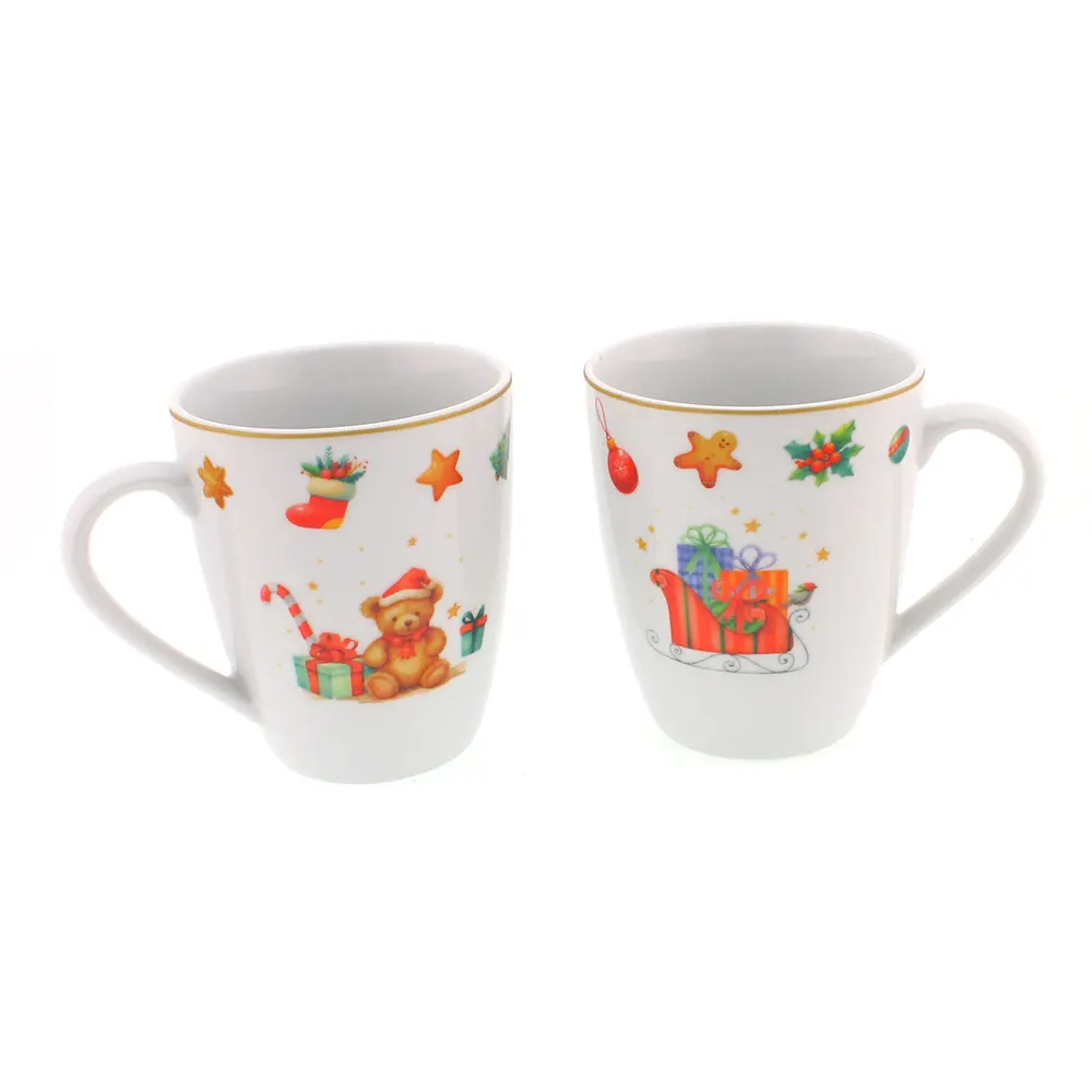 A Tognana karácsonyi bögreszettje 2 darab 3,4 deciliteres, maci és szánkó mintás bögrét tartalmaz.