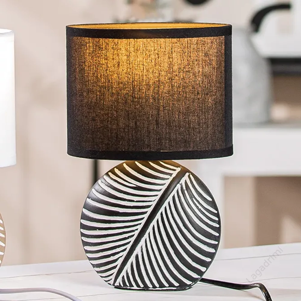 A levélformát, erezetet idéző Gilde Cycas kerámia lámpa fekete és fehér színkombinációban készült, mérete 16x25x10 cm. Foglalata E14, az izzó nem tartozék.