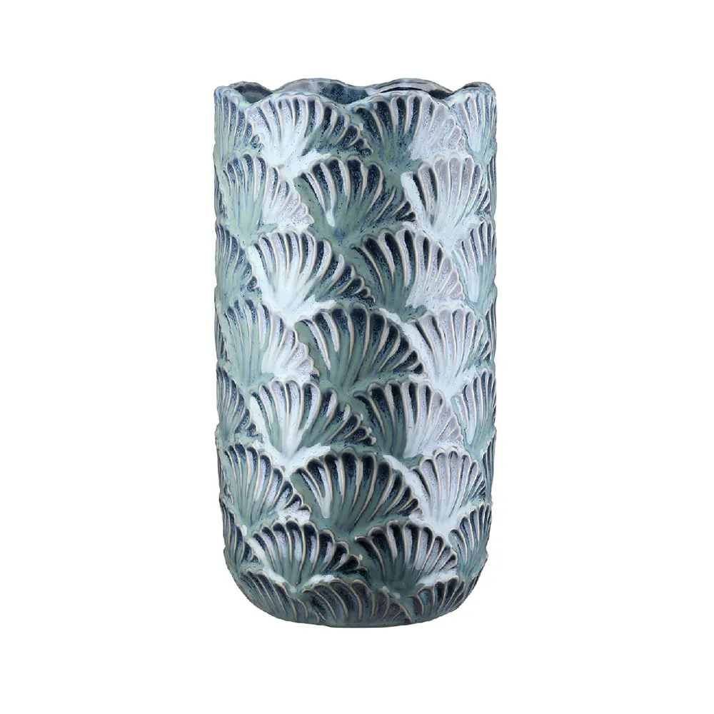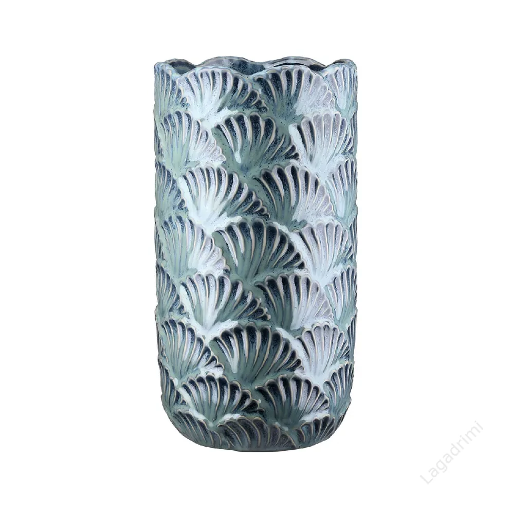 A türkizes színárnyalatú, levél mintázatú, 26,5 cm magas váza a mediterrán hangulat szerelmeseinek készült.