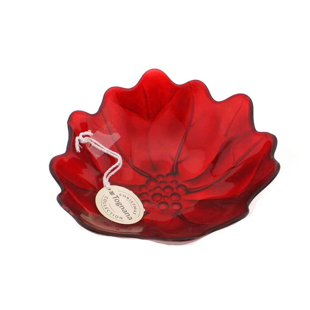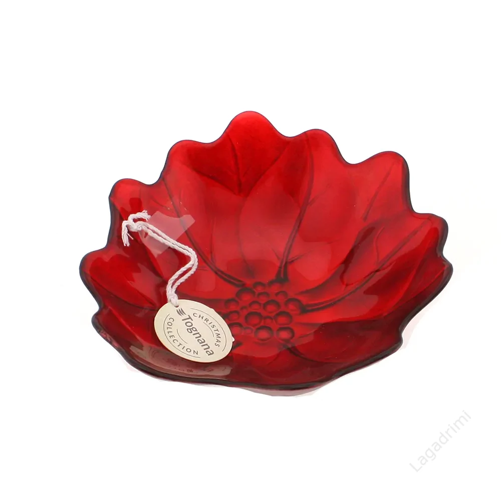 A 20 cm átmérőjű, különleges, bordó, mély üvegtál élénk színével, különleges formavilágával elegáns dekoráció. A Tognana stílusos darabja ez az üvegtál.